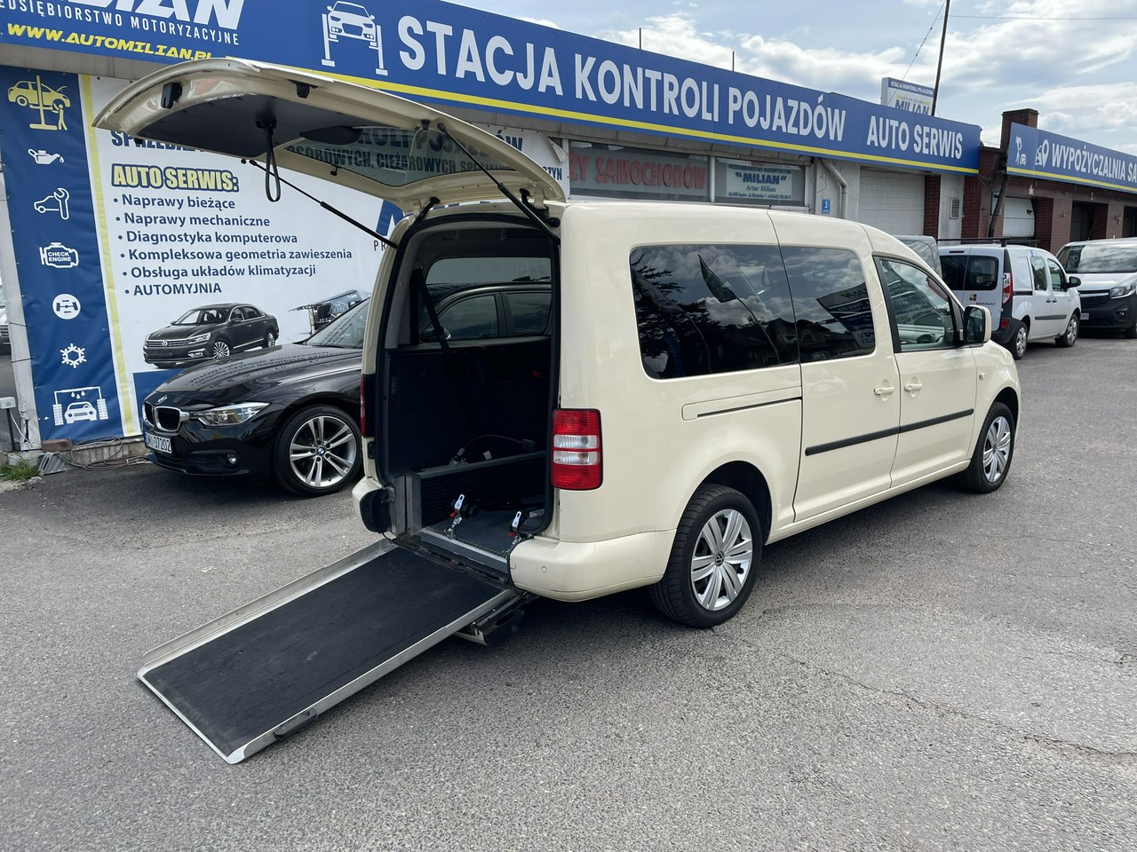 VW Caddy Maxi z 2015 roku do przewozu osób niepełnosprawnych z tyłu podjazd dla wózka.Z dwóch stron rozsuwane drzwi boczne,Wymiary wjazdu wózka dł 1,40 cm/szerokość wjazdu 80 cm/wysokość 1,40 cm,pasy zabezpieczający wózek,możliwość dołożenia tylnej kanapy.Uwaga --Przebieg karoseri 413729km silnik w aucie był wymieniony obecnie ma przejechane 165300 km,W ofercie inne pojazdy.automilian,pl