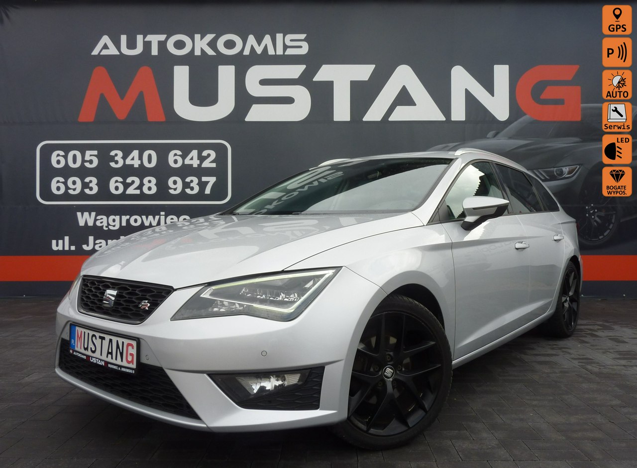 Seat Leon FR w bardzo bogatej wersji wyposażenia z benzynowym silnikiem 1.4 125 koni z 6-biegową skrzynią manualną.